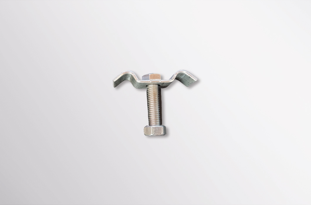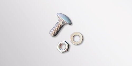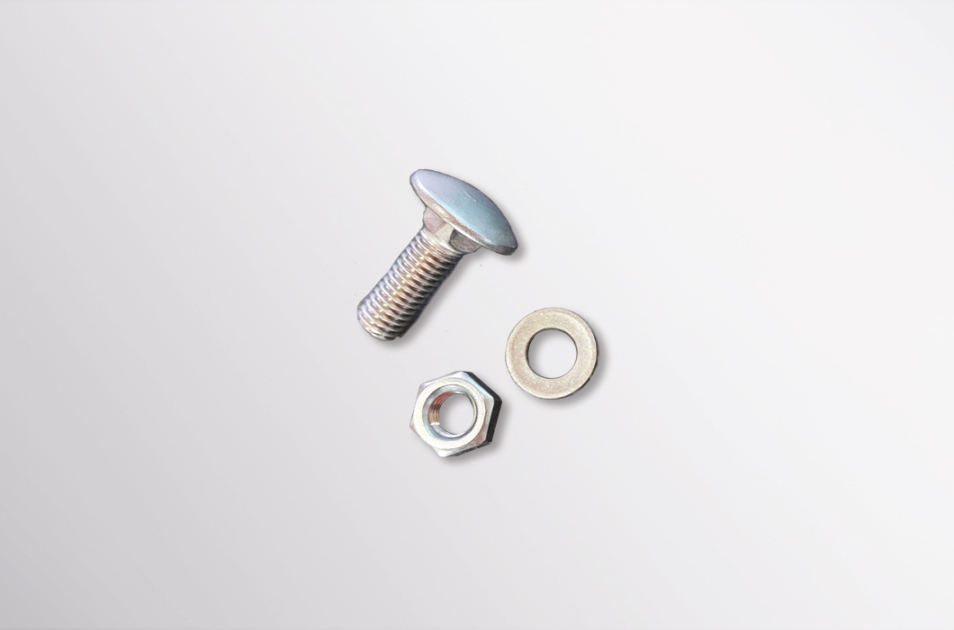 Schloßschraube, Mutter und Scheibe zur Befestigung der Blechprofilroste an den Klemmhaltern aus Edelstahl.