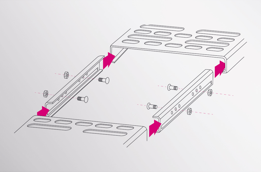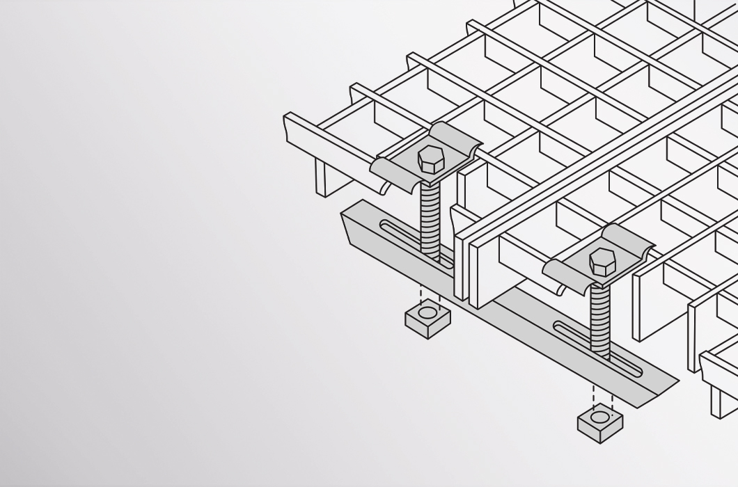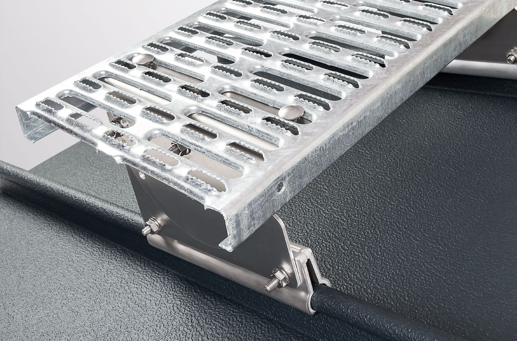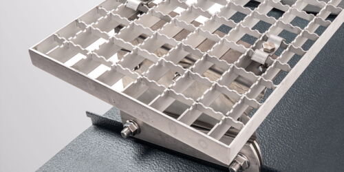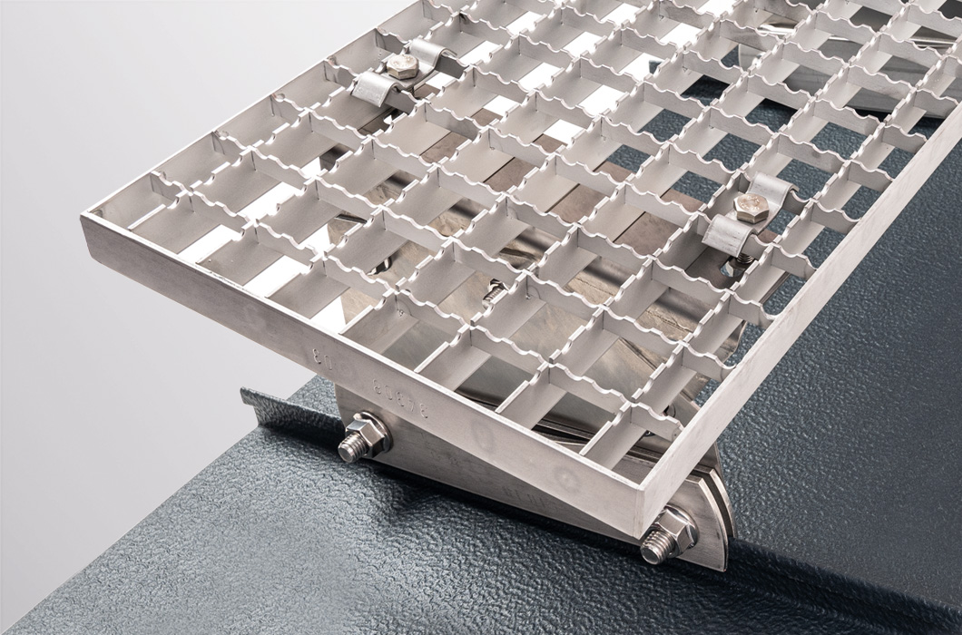 Der Verbinder für Gitterroste wird bei der Installation von Laufwegen benötigt. Hier werden an jedem Stoß zwei Verbinder vorgesehen.