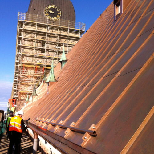 Schneefang auf Uginox Stehfalzdach auf 2.679 Metern Höhe.