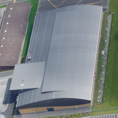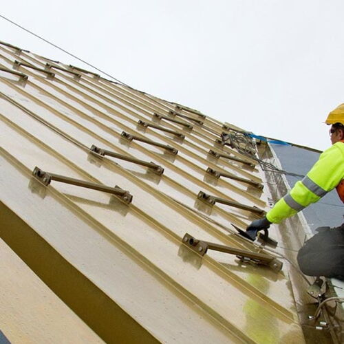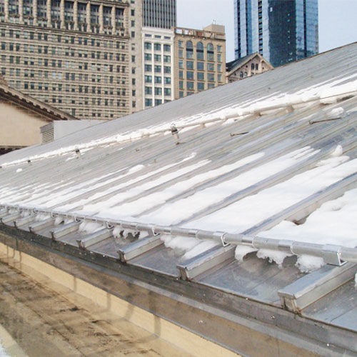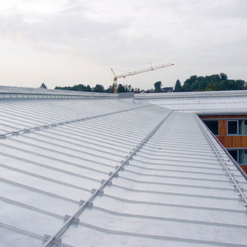 Schneefang auf Rundkopf-Stehfalzprofil an Werkshalle